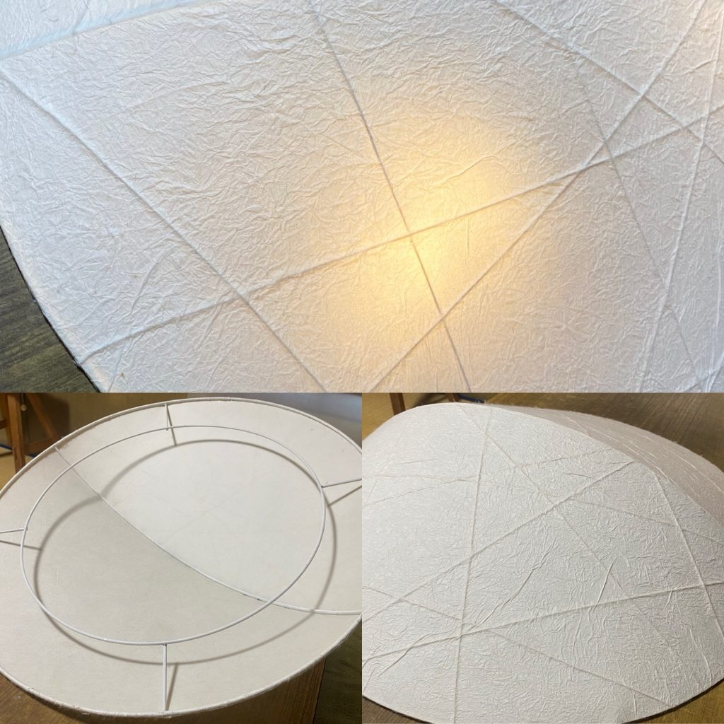 写真は、先日お引き渡しした和紙の劣化や黄ばみが進んだ照明を新しい和紙で蘇らせた実例です。