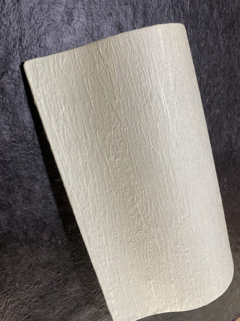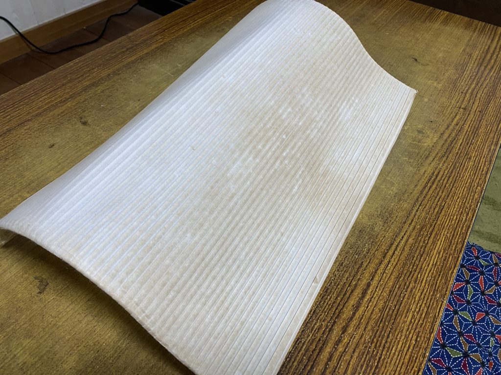 取り去った後は強度を上げたもみ和紙を丁寧に貼りました。柔らかな風合いがとても良いですね。